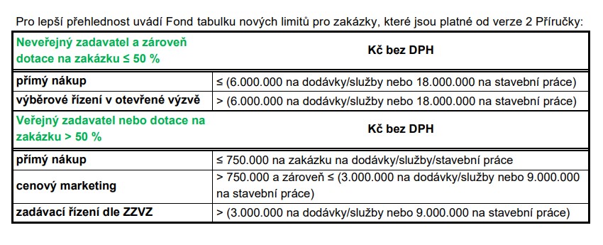 - Tabulka nových limitů
